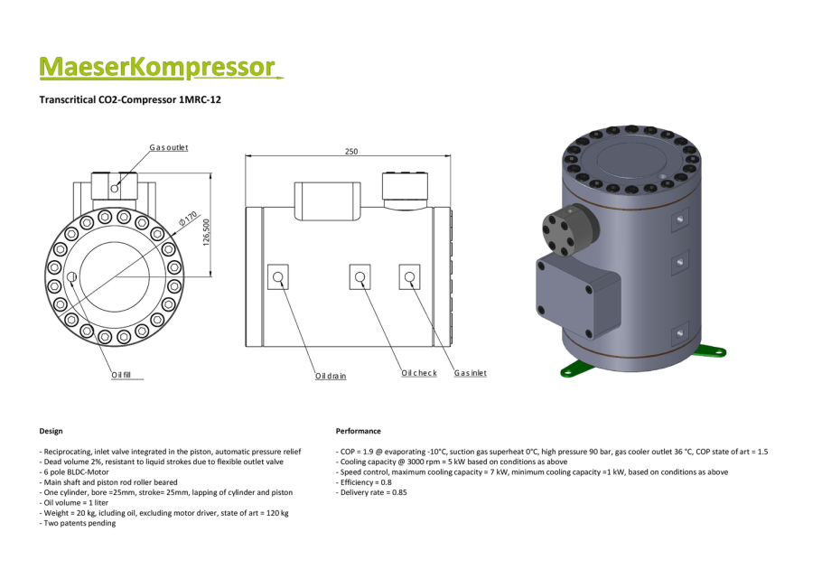 - Weight 20 kg (state of art 120 kg), including oil, excluding motor driver